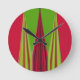 The clock did not take as long to arrive as I thought it might and was extremely well packaged. I didn't do the measurements so I didn't realize it is a little smaller than the average clock but that does not matter (just make sure you check if that's important to you).It is really nifty! It seems very solid and well made not flimsy at all. It has been going well and has kept good time in its few weeks on my wall. Nice product. Gets noticed too! Nicer in real life than the picture but true to the picture