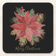 Red Golden Poinsettia Flower Merry Christmas Square Paper Coaster