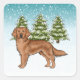 Red Golden Retriever Dog Blue Snowy Christmas Square Sticker