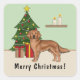 Red Golden Retriever Dog With Christmas Tree Square Sticker