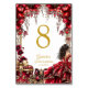 Red Golden Tiara Floral Quinceañera Table Number