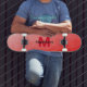Red gradient geometric mesh pattern Monogram Skateboard
