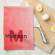 Red gradient geometric mesh pattern Monogram Tea Towel
