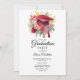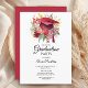 Red Graduation Cap Pink Floral Graduation Invitation