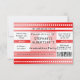 Red Festive ticket style invitation is fully customizable for your event or occasion. Use it for a graduation party or any event. Red background with white divisions and sections, with a computer printout digital style text.