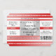 5x7 Scarlet Crimson Red cutout ticket with grey and white invitation is fully customisable for your high school party or open house. Background with white divisions and sections, with a computer printout digital style text.