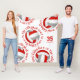 This fun volleyball themed fleece blanket features 5 randomly arranged red, gray and white volleyballs with the text, "The volleyball court is my happy place" in red encircling each volleyball in a cool typographic font, all on a white background - her name and jersey number are customizable - by katz_d_zynes