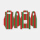 Colourful Christmas gable shaped favour box done in a red, green, and golden glitter looking striped pattern. Graphics of a gold edged decorative white text area, on the front, has red custom text ready to personalise. Great for your holiday party favours and wrapping for small Christmas gifts.