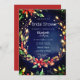 This elegant and festive winter-Christmas wedding Bridal Shower invitation is perfect for the holiday season. It depicts red, navy blue, and green watercolor flower wreathe on a navy blue gradient watercolor background. This winter flower design is perfect for trendy and stylish party events. Design with your message and information. All designs are printed.