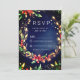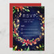 This elegant and festive winter-Christmas wedding RSVP invitation is perfect for the holiday season. It depicts red, navy blue, and green watercolor flower wreathe on a navy blue gradient watercolor background. This winter flower design is perfect for trendy and stylish party events. Design with your message and information. All designs are printed.