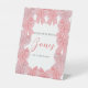 This elegant baby shower "how many bows" pedestal sign features a hand-drawn wreath of striped bows—pink with red stripes—for a playful yet elegant look. Perfect for Christmas baby shower! Personalise it for your needs. You can find matching products at my store.