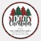 Red & Green Buffalo Plaid Pattern Merry Christmas Classic Round Sticker
