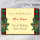 A custom food, baking or recipe sticker reading "From the Holiday Kitchen of" and room for your name in red blackletter and block text in brown and a holiday design of sprigs of holly on a red and green plaid pattern and a rustic faux parchment background. For your special Christmas breads, relishes or recipes in a jar.
