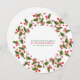 Elegant christmas dinner menu customisable template. Red berries and green trimmings christmas wreath illustration.