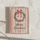 If you are looking for a simple minimalist beautiful and easy editable Christmas card. This one is perfect for you. And as you see the design features a green hand made and drawn Christmas wreath bow. With green and pink hand written typography of MERRY CHRISTMAS. And your family name and year under it. And In the back you got a a customisable Christmas greeting paragraph and ribbon above. All on red stripes. And inside a wavy green frame.