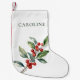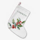 Red Green Elegant Christmas Botanical Reversible Small Christmas Stocking features a beautiful watercolor illustration of seasonal greenery and holly berries, along with elegant type.