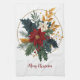 Red Green Gold Christmas Holiday Floral Botanicals Tea Towel