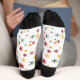 These bright and colourful socks have a retro style ornate snowflakes pattern in red, green, and gold on a white background. Wonderful for the Holiday season, but fun all year long! Appropriate for either a man or a woman.