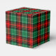 A party favour box with a red and green Christmas plaid art design Customise it to add your name or message, change sizing, even save your design for later.