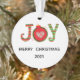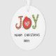 Red Green Joy Christmas Holiday acrylic ornament. Personalise with saying and year.