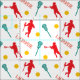 Red & Green Male Lacrosse Player Pattern Fabric
