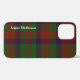 Colourful iPhone 12 case mate phone case done in the traditional red and green Scottish tartan plaid of the Matheson clan. White text running vertical, on the left side, is ready to personalise. Stylish and great way to protect your smart phone, and makes a great gift idea.