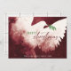 These 7" x 5" flat Christmas greeting cards feature an abstract dove in shades of red, green and white. "Merry Christmas" in red and green along with a green olive branch. Customise with your family name and year.