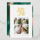 Abstract chic stylish, minimal red and green modern painted 3 photo holiday foil card. Part of a holiday collection.
