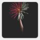 A photograph of a red and green fireworks display that looks like a palm tree.