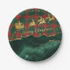 Red Green Plaid Santa Sleigh Merry Christmas Paper Plate