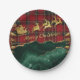 Red Green Plaid Santa Sleigh Merry Christmas Paper Plate