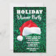 Fun Santa theme, red and green holiday dinner party invitation- Invite family, friends, neighbours, and coworkers to your holiday party. Reads 'Holiday Dinner Party' in modern, bold, lettering at the top. Festive, faux green glitter background. Centred is a crimson red Santa hat. Below, invitation reads 'Please Join Us' with drop shadow. Rest of custom holiday party details are below in white. Back has coordinating, solid green background, which may be changed to any shade. Note: All images are printed. Not actual glitter. There are different invitation paper choices, shapes, and sizes, too. Classic Christmas red and green, modern holiday party invitations for your fun holiday celebration. Suitable for holiday office party, tree trimming party, Christmas open house party, Secret Santa party, etc. Find more winter holiday party invitations in our Zazzle.com/angela65 shop.