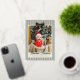 Personalize this gold foil Christmas card with a photo on the front and four more square photos on the back. Wish your loved ones the merriest Christmas with the pre-written text on the back or delete to write by hand. Your photo is printed against a background of Christmas stripes in vintage colors of red, green, and neutral. A gold foil bow at the top, and Merriest Christmas in a vintage script, also in gold foil.