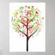 Red green tree and cute birds poster print, featuring a colourful red green tree with a variation of leaves and birds.