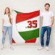This cool volleyball themed fleece blanket features a simple, abstractly oversized red, green and white volleyball that covers the entire blanket - personalise with the athlete's name and jersey number, which are positioned off centre on the blanket - by katz_d_zynes