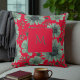Red green watercolor floral pillow featuring elegant script accents with trendy beautiful flowers and a vintage look, perfect for holiday, spring, fall, autumn, or winter home decor.