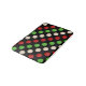 This rug is just as pictured! Vibrant Red and very soft material, nice to step in out of the tub! Matches my set of accessories and shower curtain! A must have to add some whimsy to your bathroom! Very nice, vibrant and clear print! Beautiful!