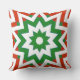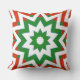 This unique design features a geometric pattern of red and green shapes on a white background, and is printed on both sides of pillows. Some of the shapes look like patterns of stars. It's a great accent for the Christmas holiday season.