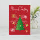 Red Green White Snowflakes Merry Christmas Holiday Card. This greeting card has white, yellow, green snowflakes, Christmas tree with decorative script typography. This card is fully customisable. You can arrange the design elements as per your choice. For further customisation, feel free to contact me at kbasandra@gmail.com.