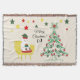 Red Green White Star Bear Monogram Merry Christmas Throw Blanket