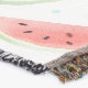 A quality printed throw has its advantages. This is a much finer weave throw than its loopier cousins, and though lighter, it is worth the investment for custom room accessorizing. The back is much prettier than the typical brown, and the fringe on the long sides very vivid, the selvage nicely done. Before photographing, I washed the throw in cold water, delicate, with a thicker woven throw the same size. On tumble dry low, this throw was dry in half the time as the other. This is a very practical quality if you use throws for furniture covers or to wrap up in frequently. The sleekness of the fabric makes it a great layer for accenting or protecting without the feeling of sitting on too much stuff. Perfect for napping or when you feel a light chill coming on. The color printing is beautiful and on this fabric, matched the design and color of my Photoshop image. This is an advantage for blending room fabrics and colors. The fringe on the short sides prints the colors from the design image and therefore varies from the side fringe. I streaked a white fractal line through the plaid pattern to give the illusion of weaving. This printed as crisp as an illusory thread, and put some white in the short side fringe, showing another advantage of print vs loomed- for artistic purposes, line lines, detail, and color integrity can be planned and preserved. My loomed throws have color limitations and more of a needlepoint texture. Print throws reproduce an exact image. The throw felt a little stiff straight out of the package, but this went away in the first delicate wash. Of course I searched the wash water for ink or bleeding and there was none.