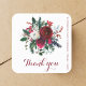 Red green winter peonies wedding thank you square sticker