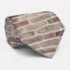 Novelty brick tie in dark, rustic red and grey with off-white mortar colour.  Horizontal pattern covers front and back.