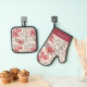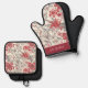 Red & Grey Floral Toile Shabby Chic Personalised Oven Mitt & Pot Holder Set