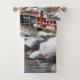 Red Grey Japanese Pagoda Soribashi Winter Bath Towel Set