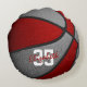 This basketball team colours pillow for a girl or boy features the realistic image of a basketball that has alternating red and grey recolored panels - personalise with player name in an "autograph" style font overlying the athlete's jersey number - by katz_d_zynes