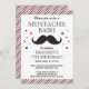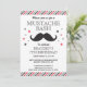 Fun moustache bash birthday party invitation featuring a funny black moustache surrounded by red and grey stars. Top and bottom are borders made of diagonal stripes. Customisable black text. Fun retro design for kids parties. For custom requests or help with customising please use the store contact link above.