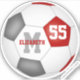 This team colours soccer sticker for boys or girls features a traditional style soccer ball with red, grey and white panels - customise the player's name, monogram and jersey number - by katz_d_zynes