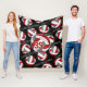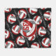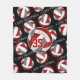 This sporty but girly volleyball fleece blanket features a large red, grey and white artsy, stylised volleyball, upon which her name and jersey number can be personalised, overlying a pattern of smaller red, grey and white volleyballs and the sporty font text "I love volleyball" that stretches between the angled rows of volleyballs - background is customisable black - by katz_d_zynes