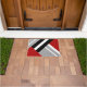 Colourful geometric design illustration in Scandinavian style with stripes and triangles decoration in grey, red, white and black colours for everybody who likes geometric design.
